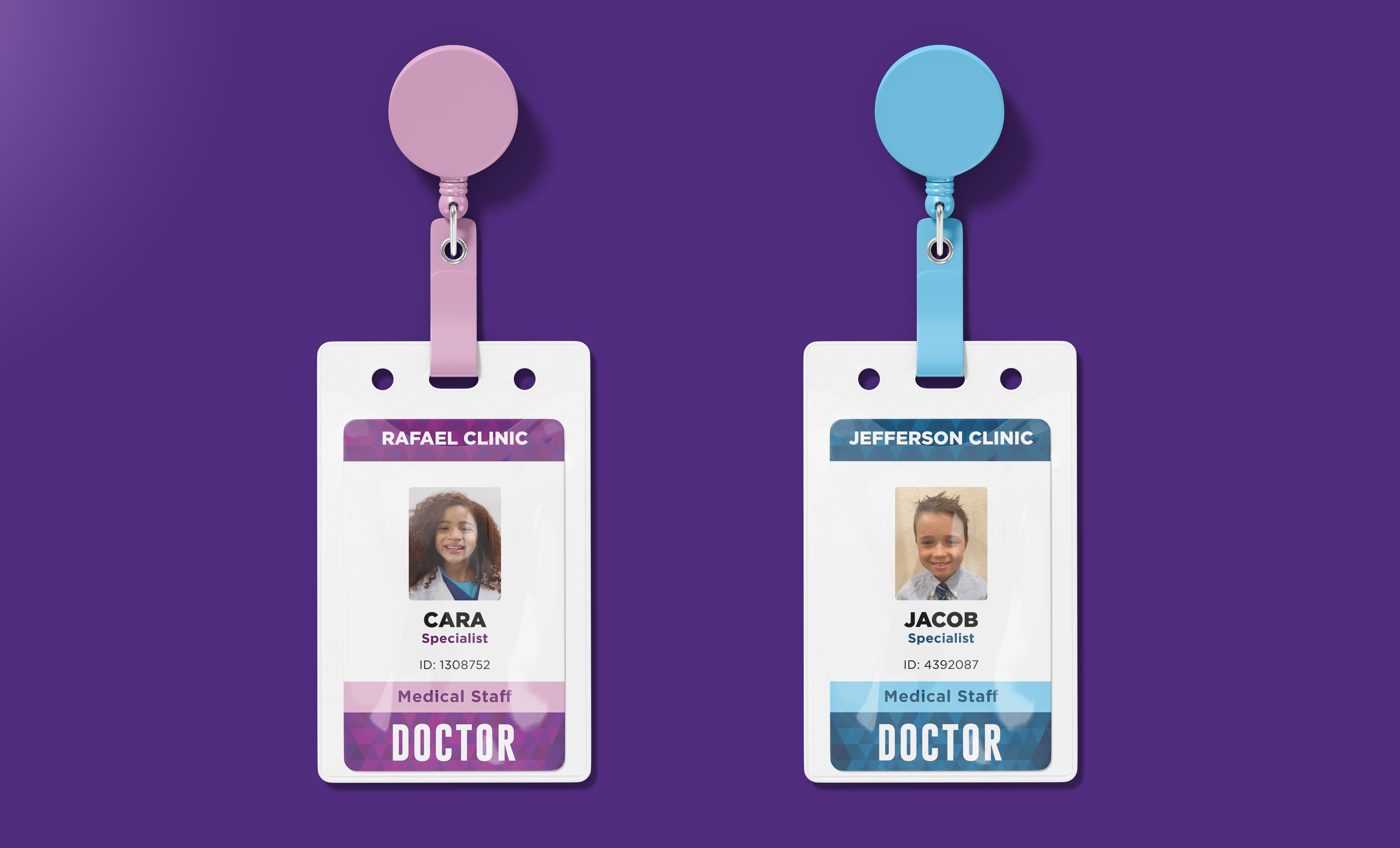 Nothing says “official” like a badge. To make our kid doctors look like real-world doctors, I designed badges to complete their uniforms.
