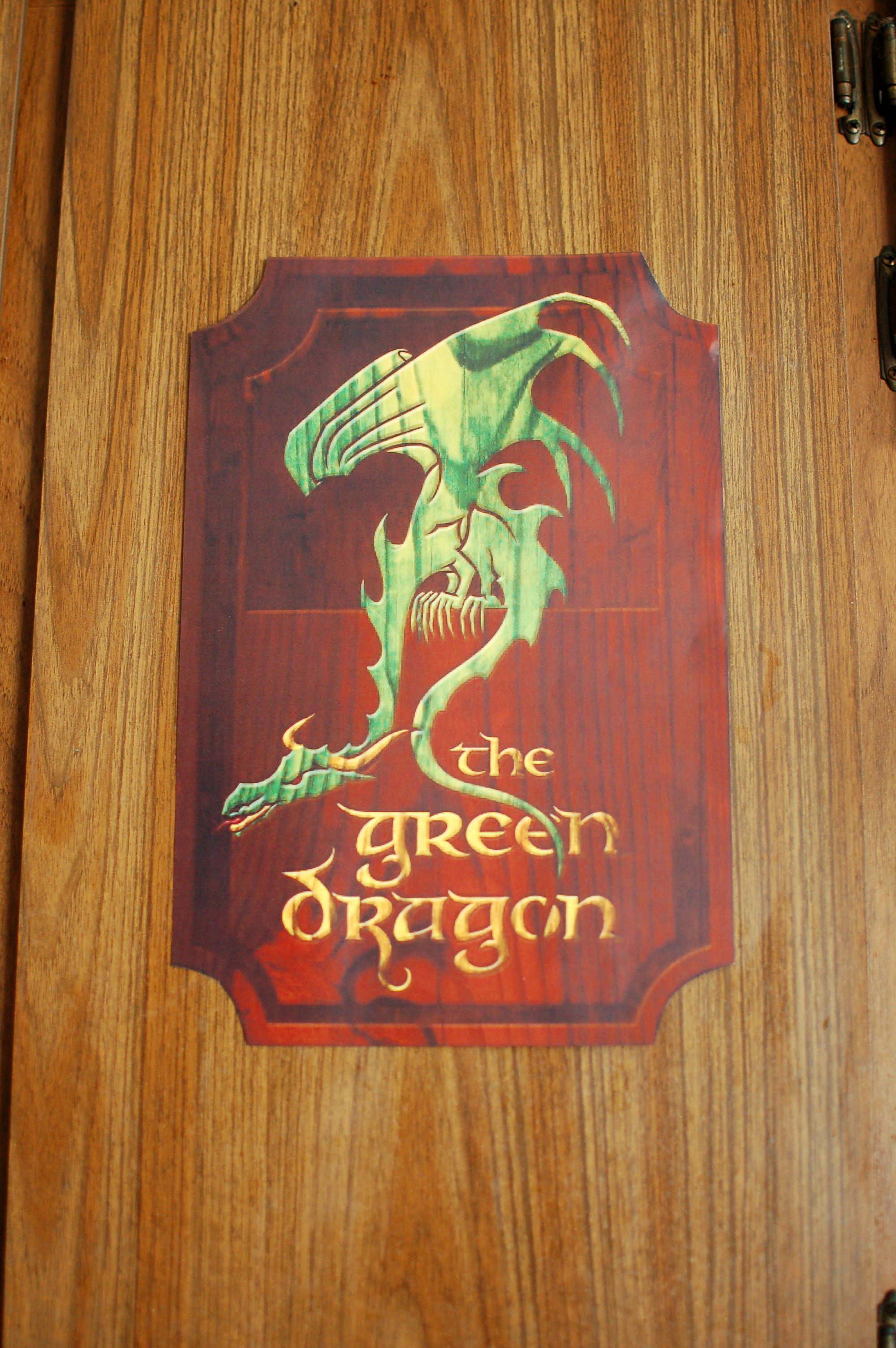 I also found a wooden sign for “The Green Dragon” that I cut and printed out to put over the food area.