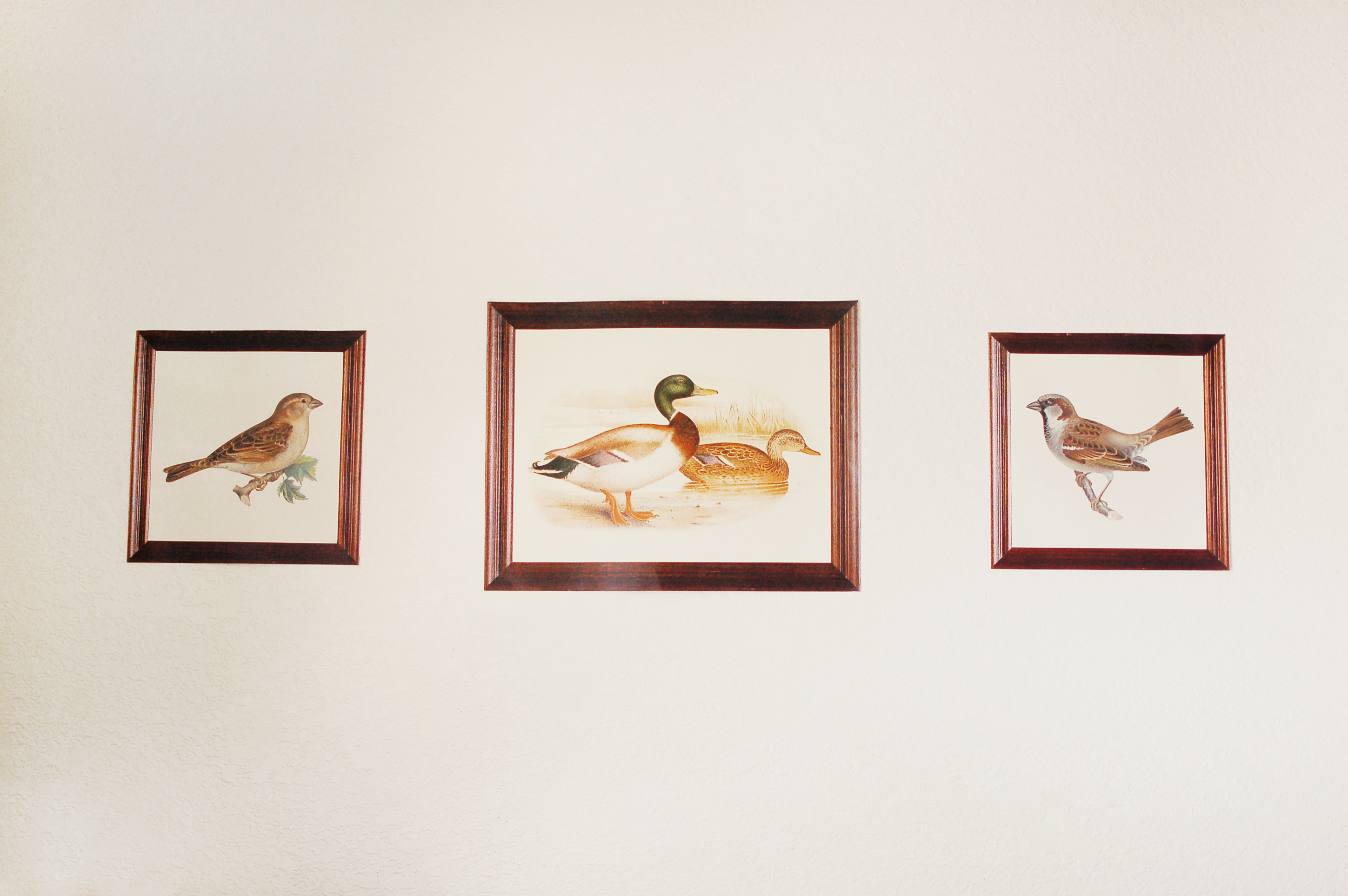 I printed out various art pieces that matched the antique paintings of mallards and other birds that hung in Marion’s motel room. I photoshopped them into brown wooden frames to give them a realistic aged feel.