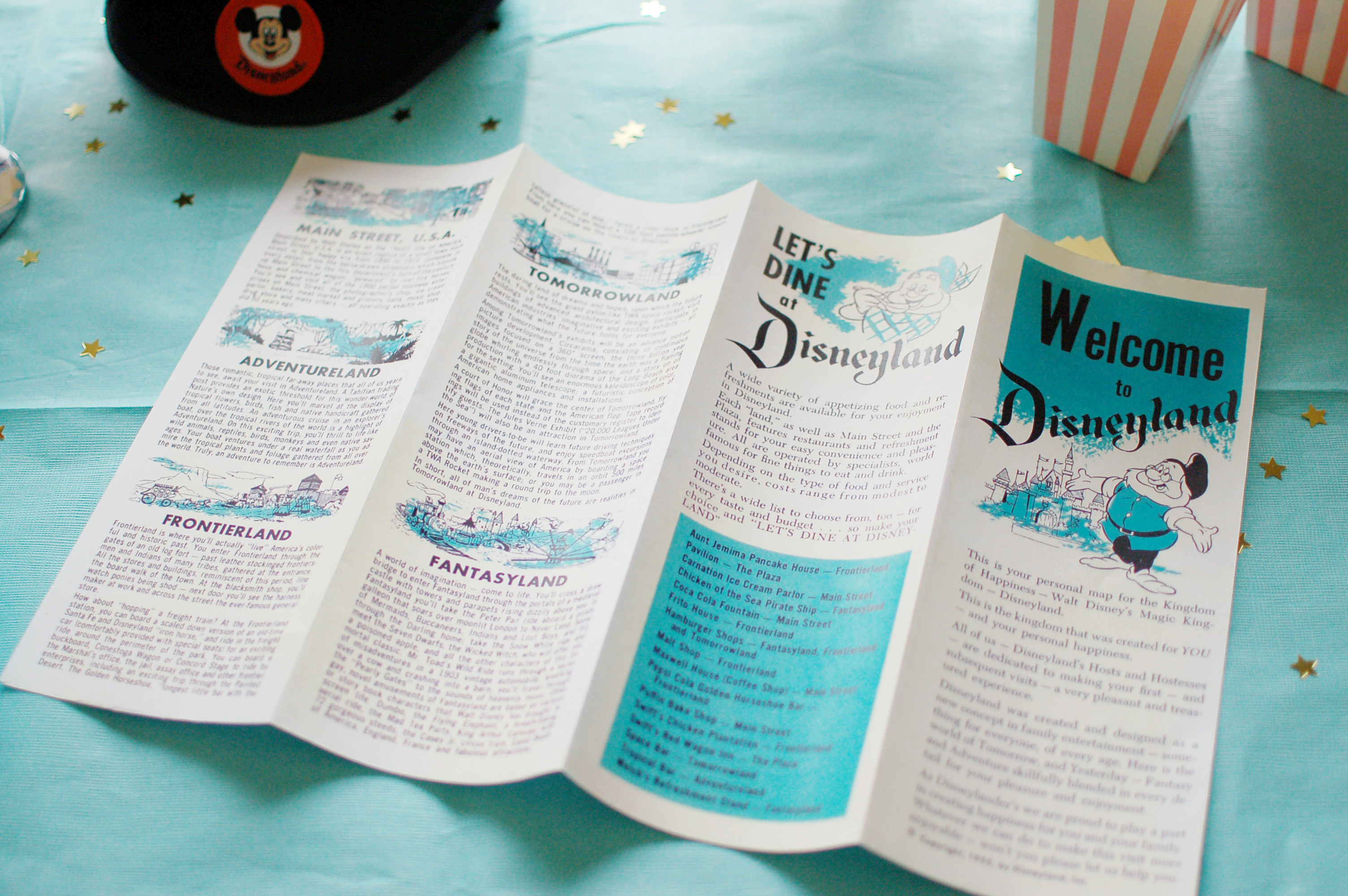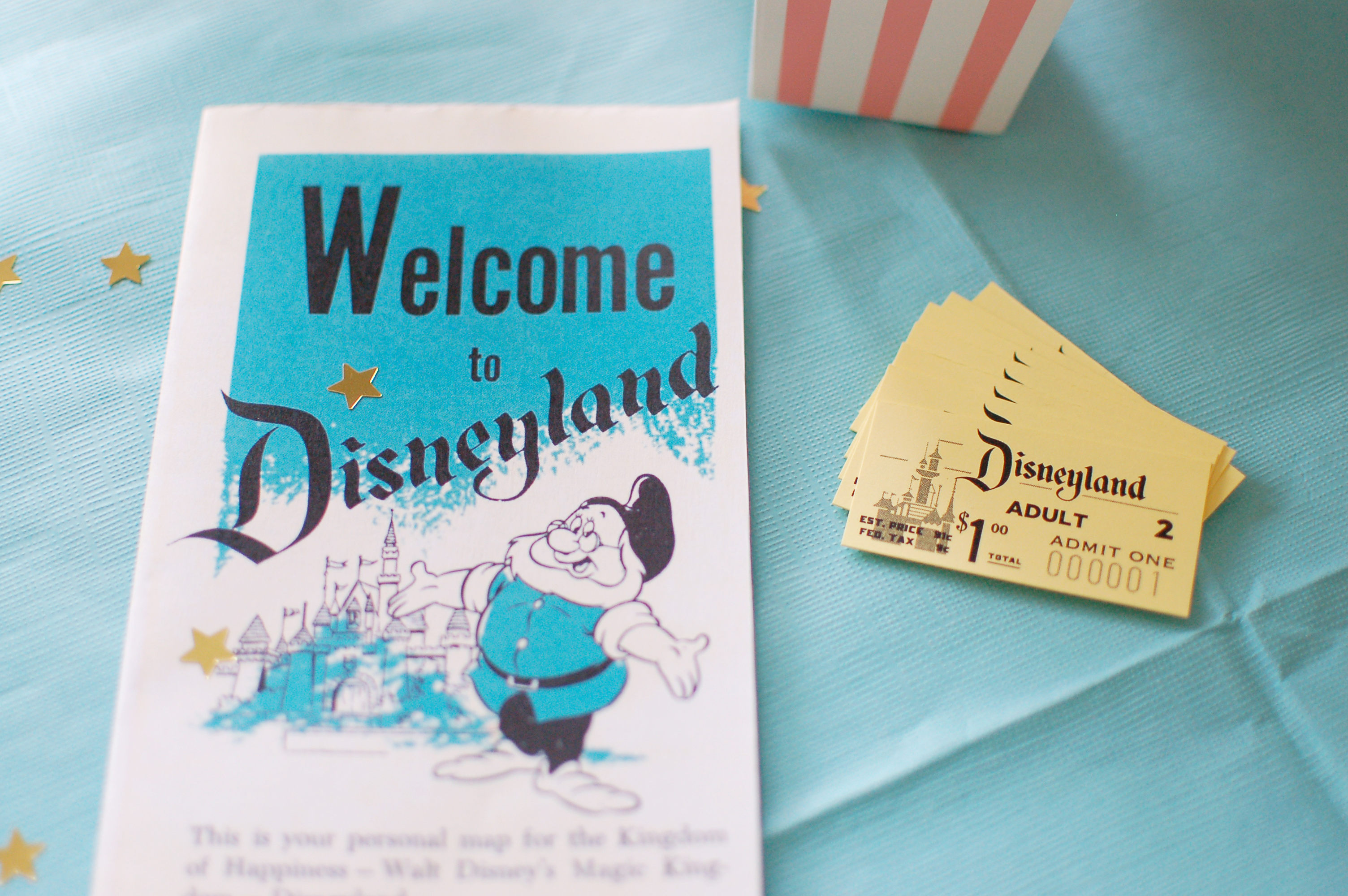 I found the original 1955 Disneyland brochure online and I recreated the original Disneyland ticket, which sold at a whopping $1 a pop. This truly made us feel like we were in a “Vintage Disneyland”.