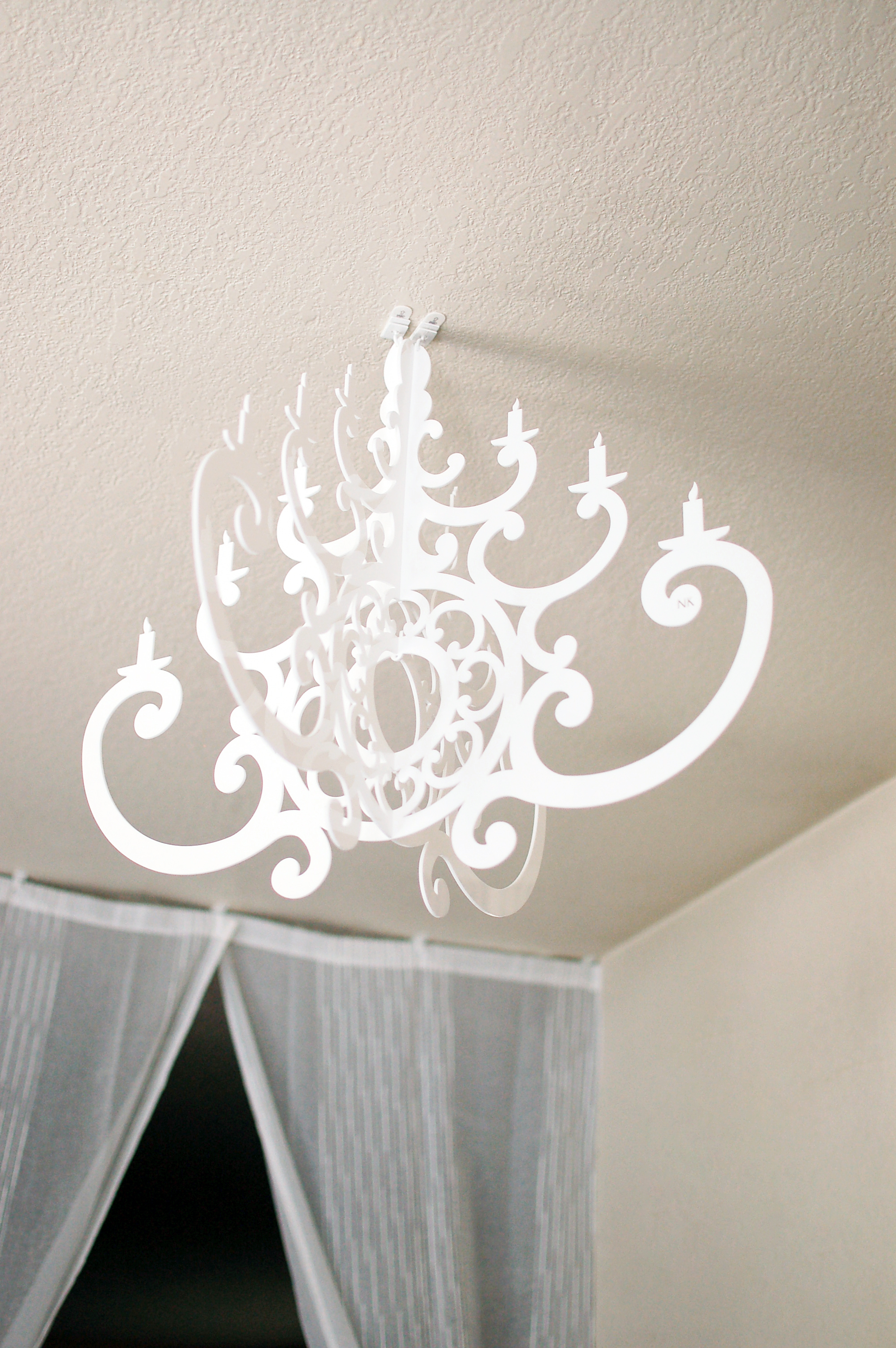 What's an English home in the 1800s without a chandelier? I ordered this acrylic 3D chandelier online to hang from the ceiling.