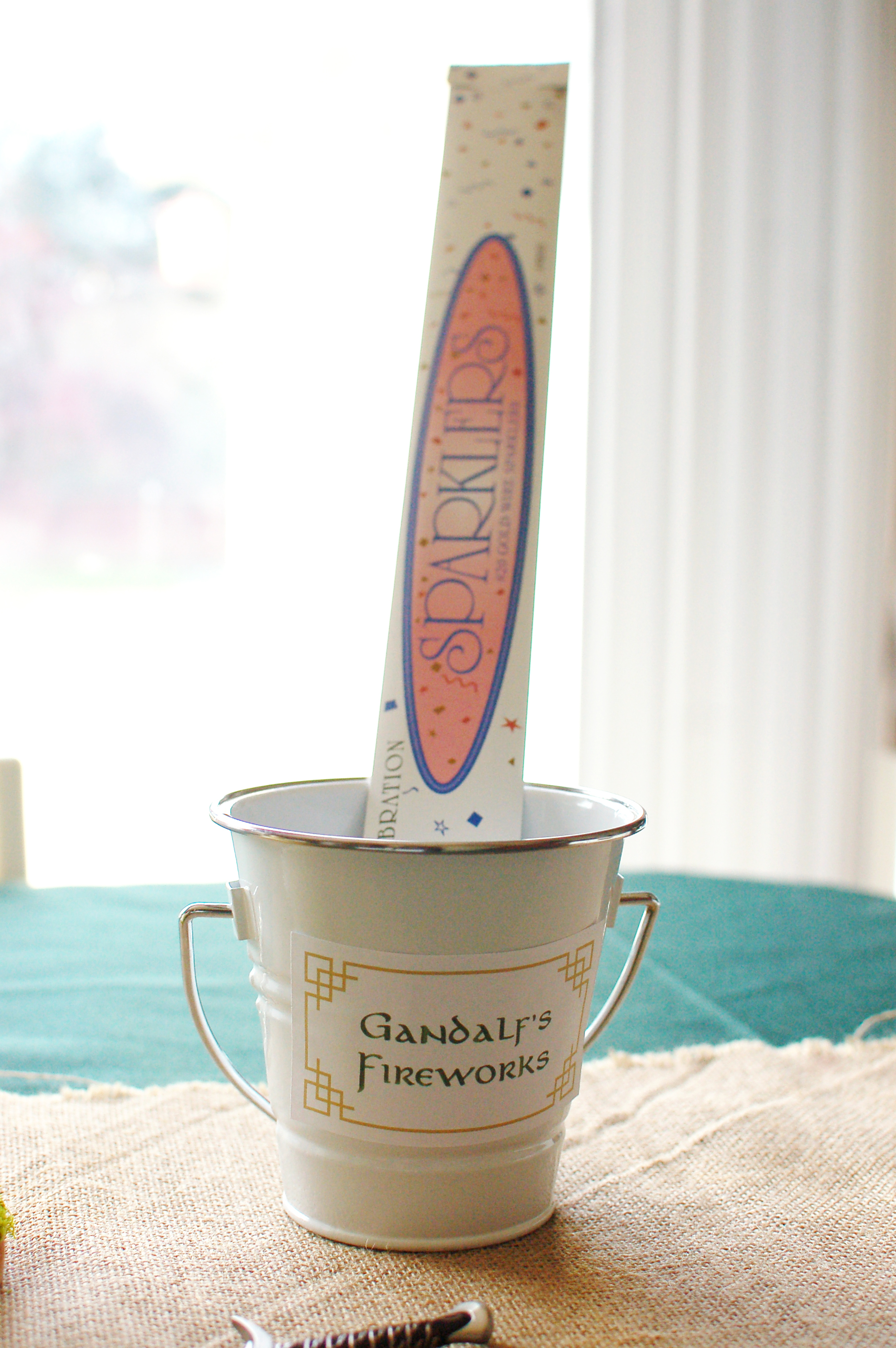 I bought sparklers to celebrate the engagement Gandalf-style and made the label to match the rest of the decorations.