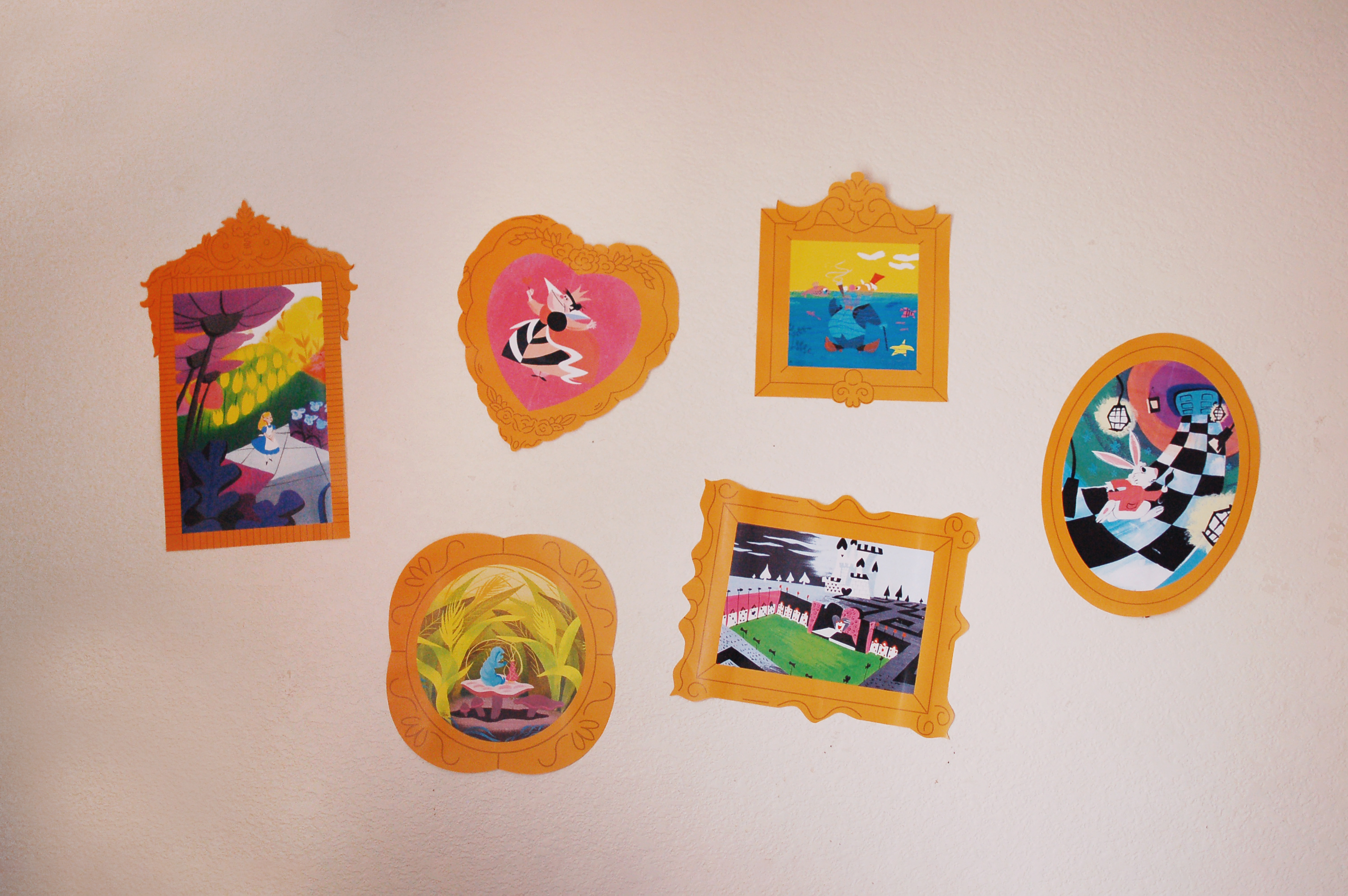 I devoted a wall to the great work of Mary Blair, the concept artist for “Alice in Wonderland”, whose vibrant colors and flat shapes set the tone for the unique style of the film.