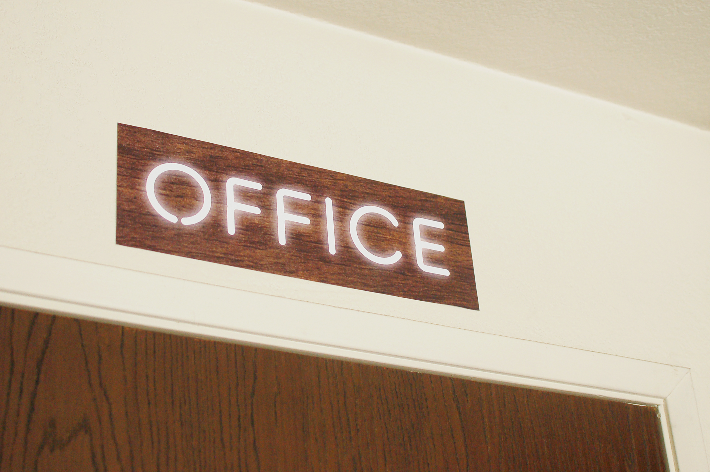 Another small sign outside of the office. I also photoshopped a “door bell” that resembled the one in the movie.