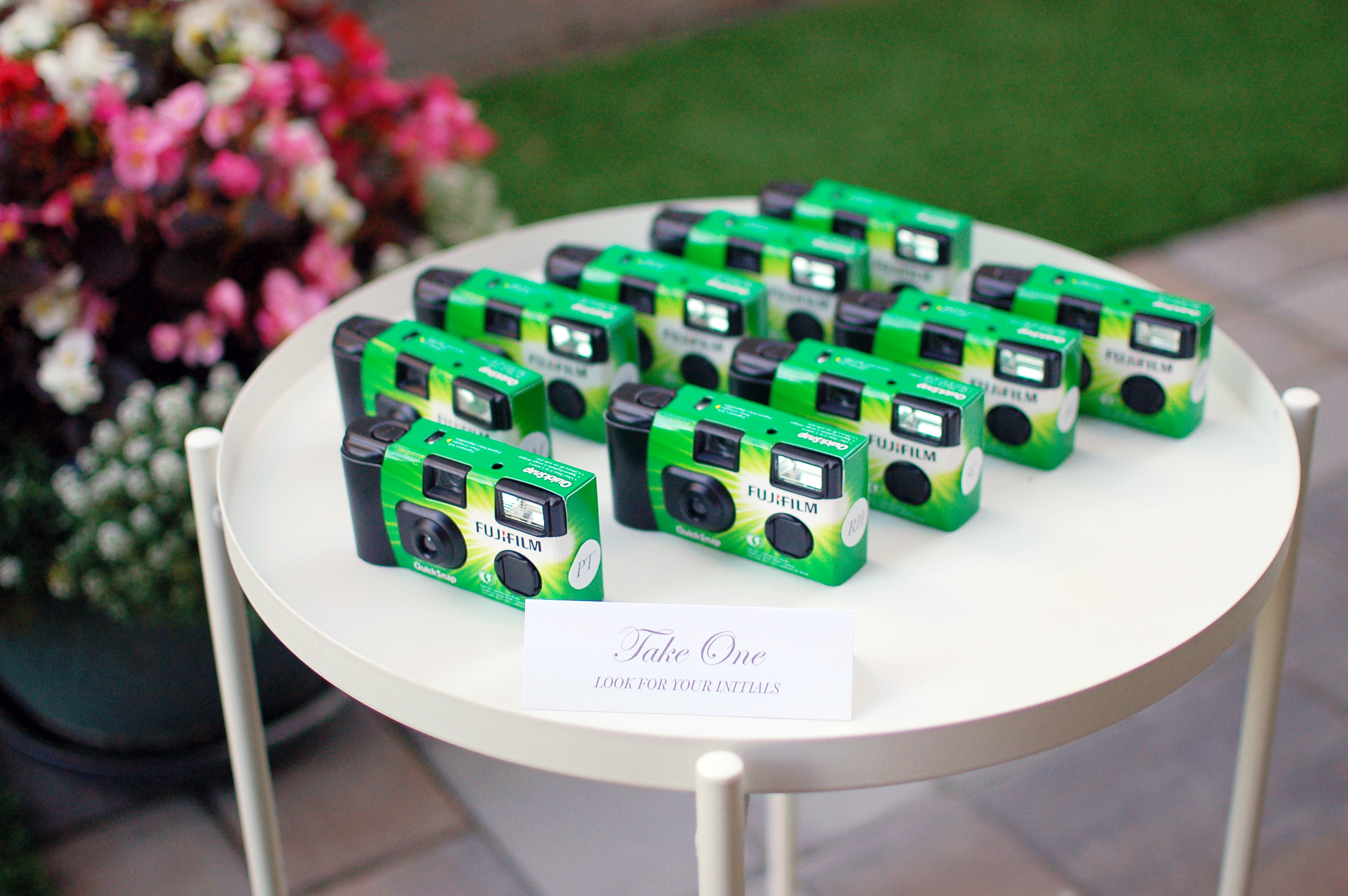 This party wouldn’t be complete without disposable cameras. I made labels with the guests initials to keep track of whose camera is whose.