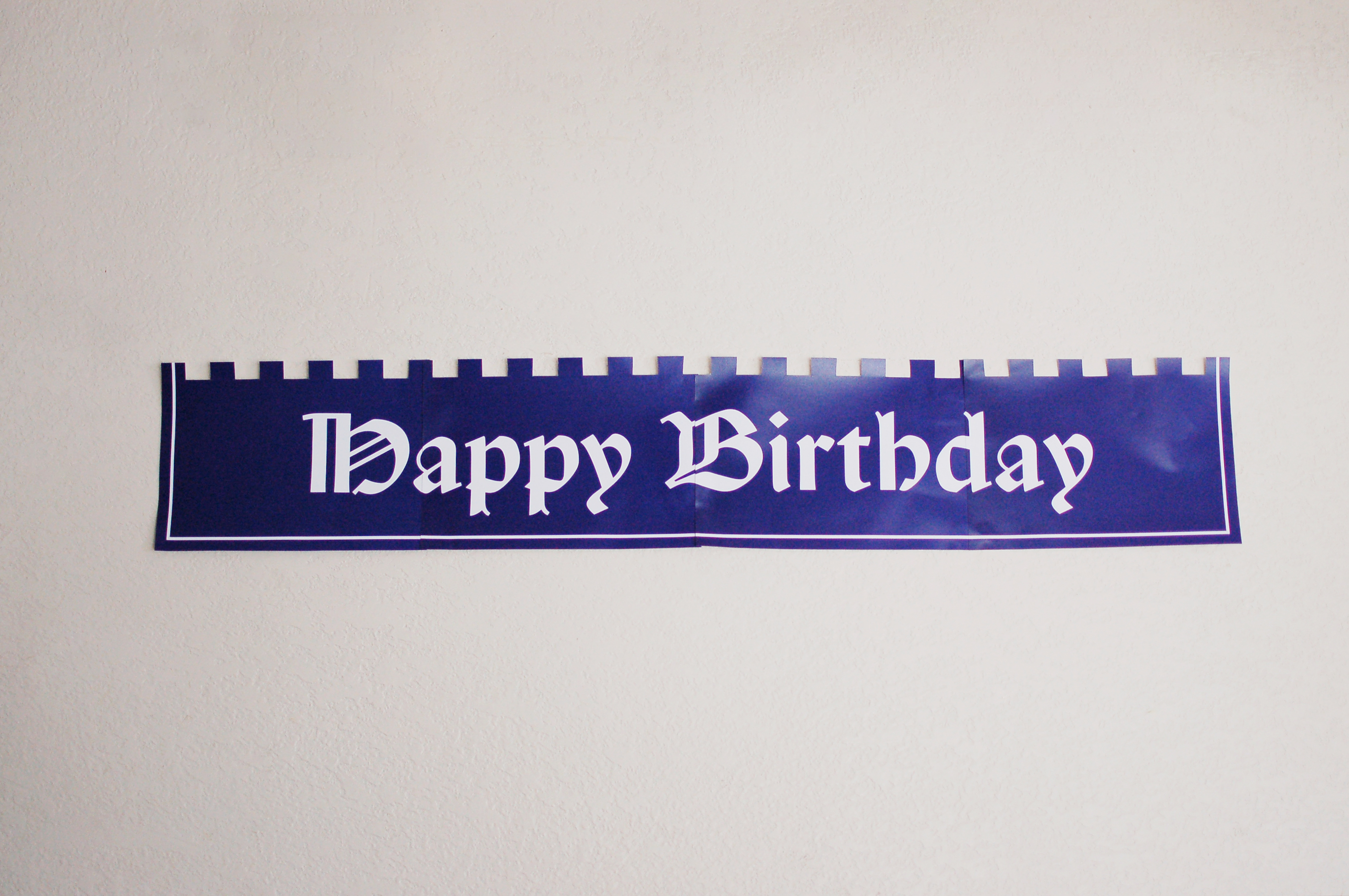 The main birthday banner is based off a medieval banner hanging in the castle, that also used an Old English-style font.