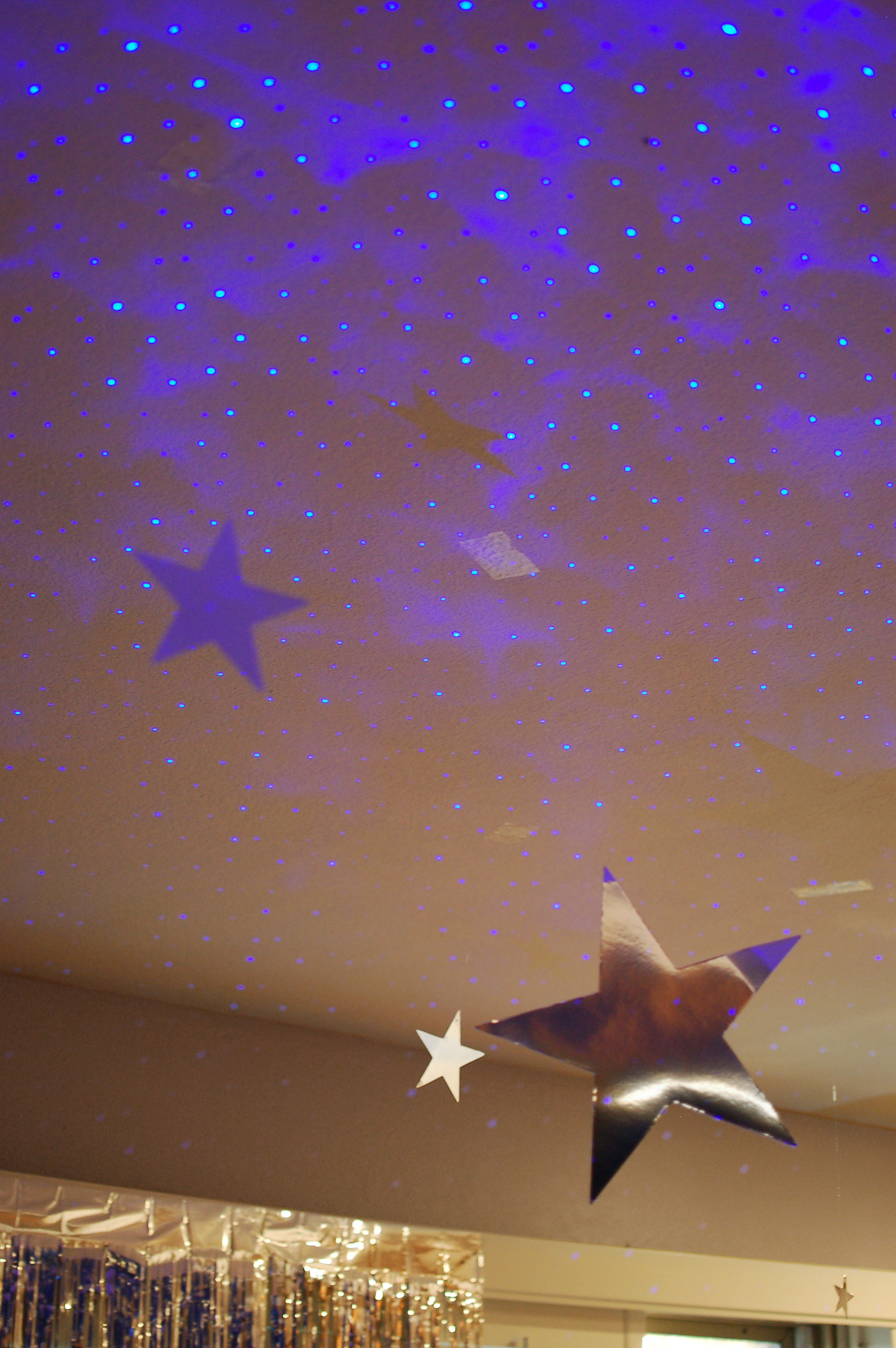 We hung these silver stars on fishing line in all party areas to stay true to the theme of the night.
