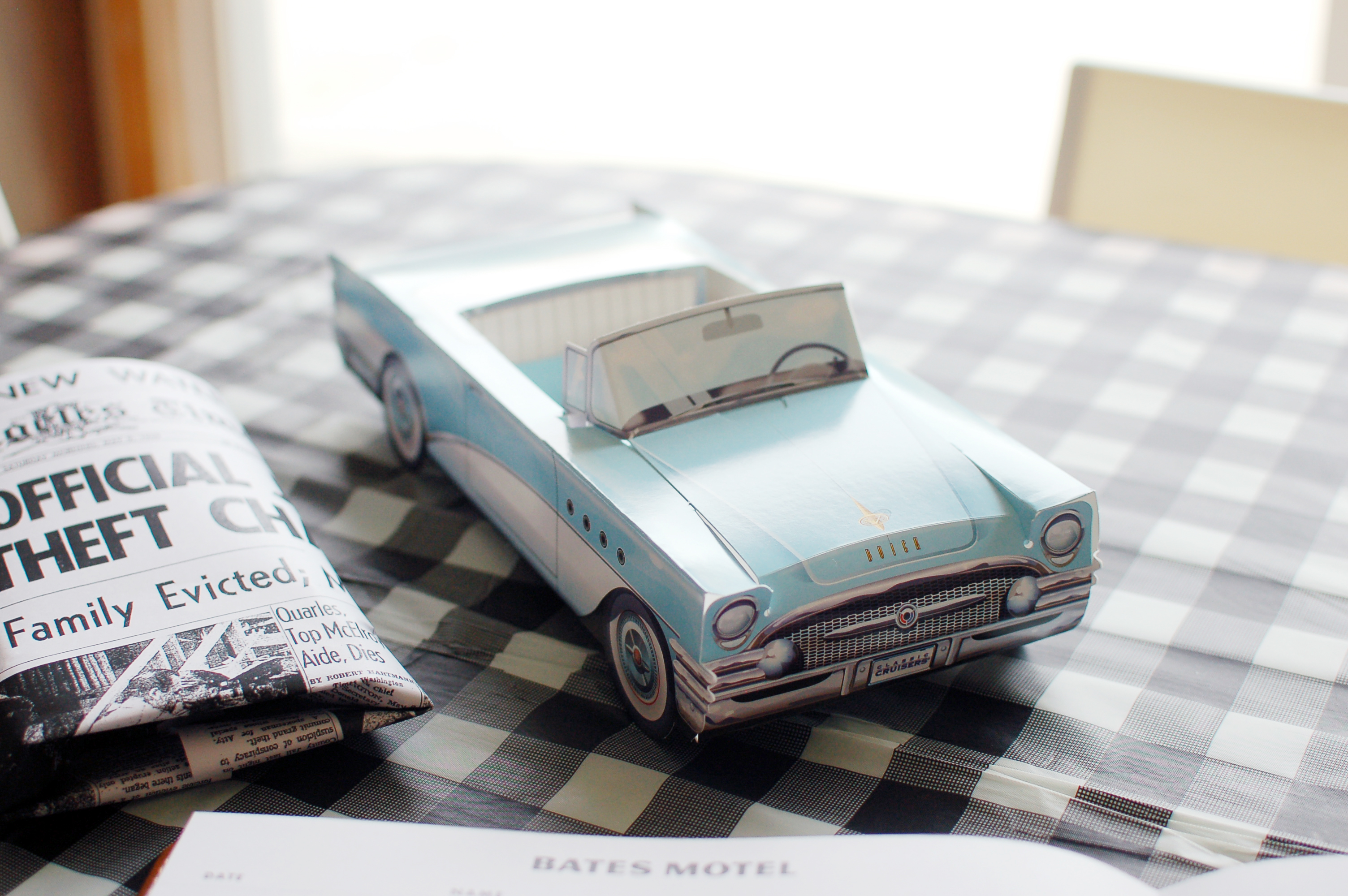 You're in luck, there's a vacancy at the Bates Motel and you're in for a screamin' good time. From the guest book to the key wall to a very suspicious newspaper, I transformed our kitchen into the infamous Bates Motel from Psycho for my sister's birthday.
