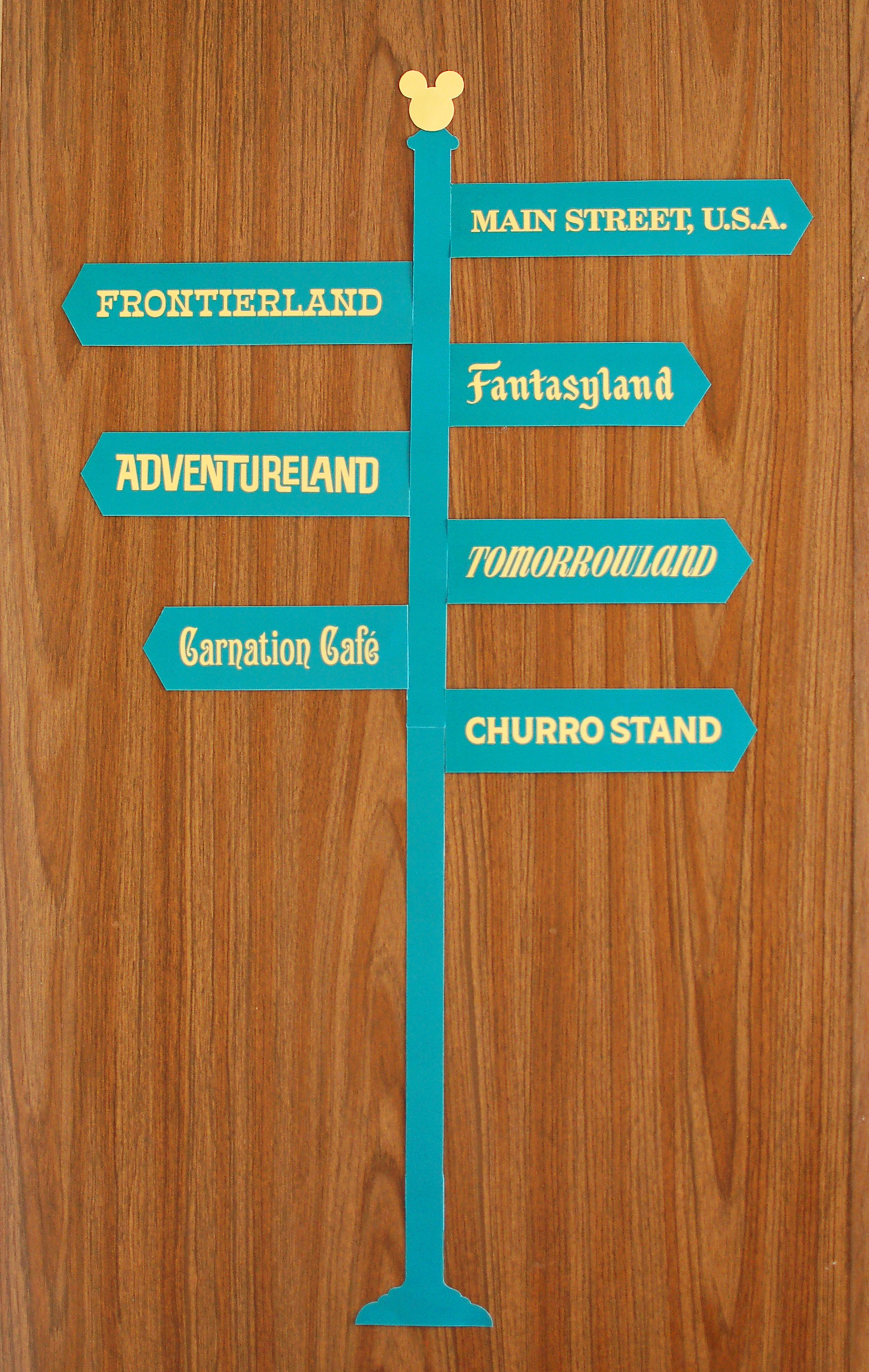 For this directional post, I referenced the original typography used for each of the lands within the park. I kept it historically accurate by only including lands that existed in the park on opening day. That’s right, no Toon Town yet!