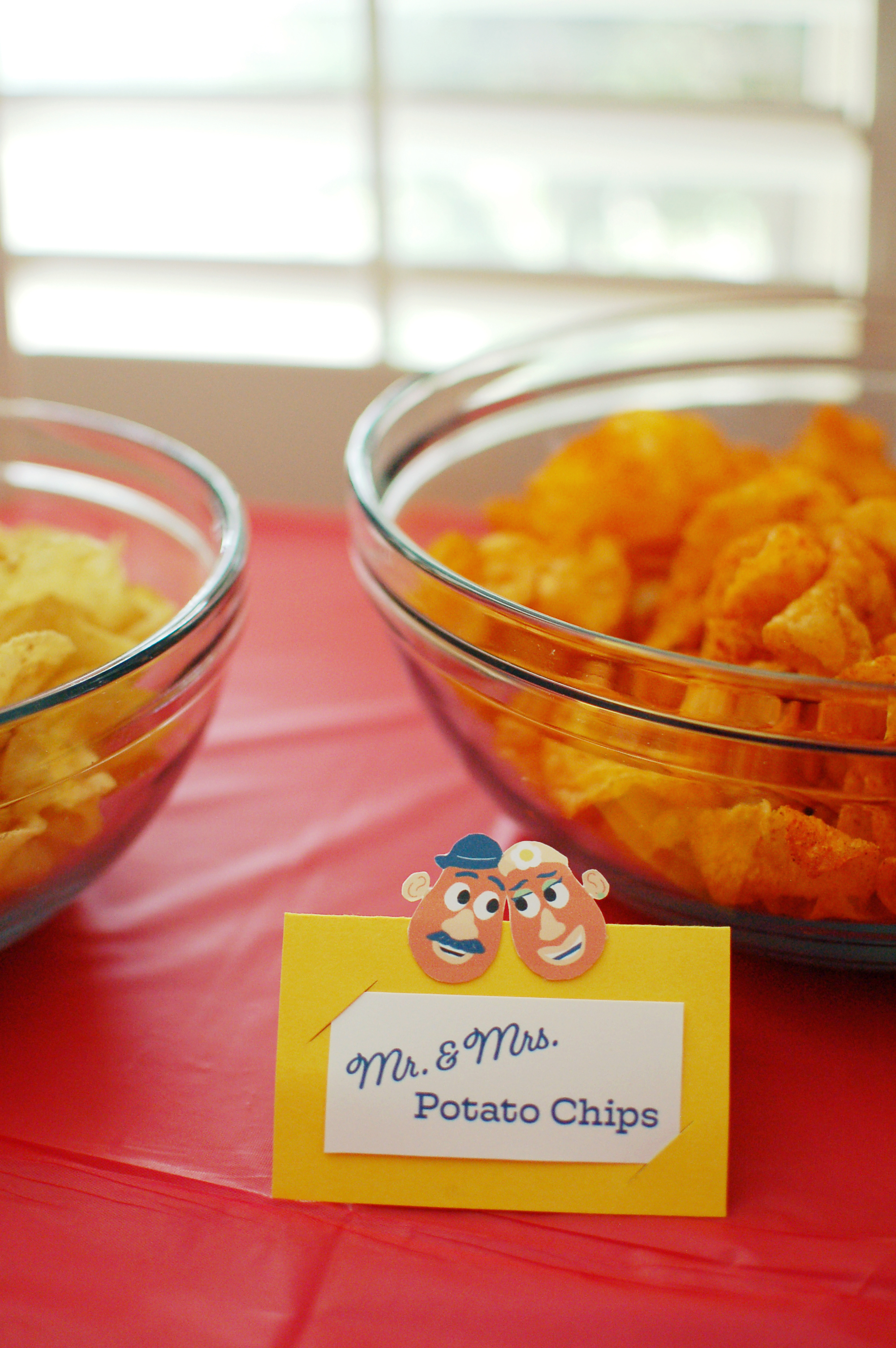 I made these punny tent cards for the food table and illustrated Mr. & Mrs. Potato Head on Procreate.