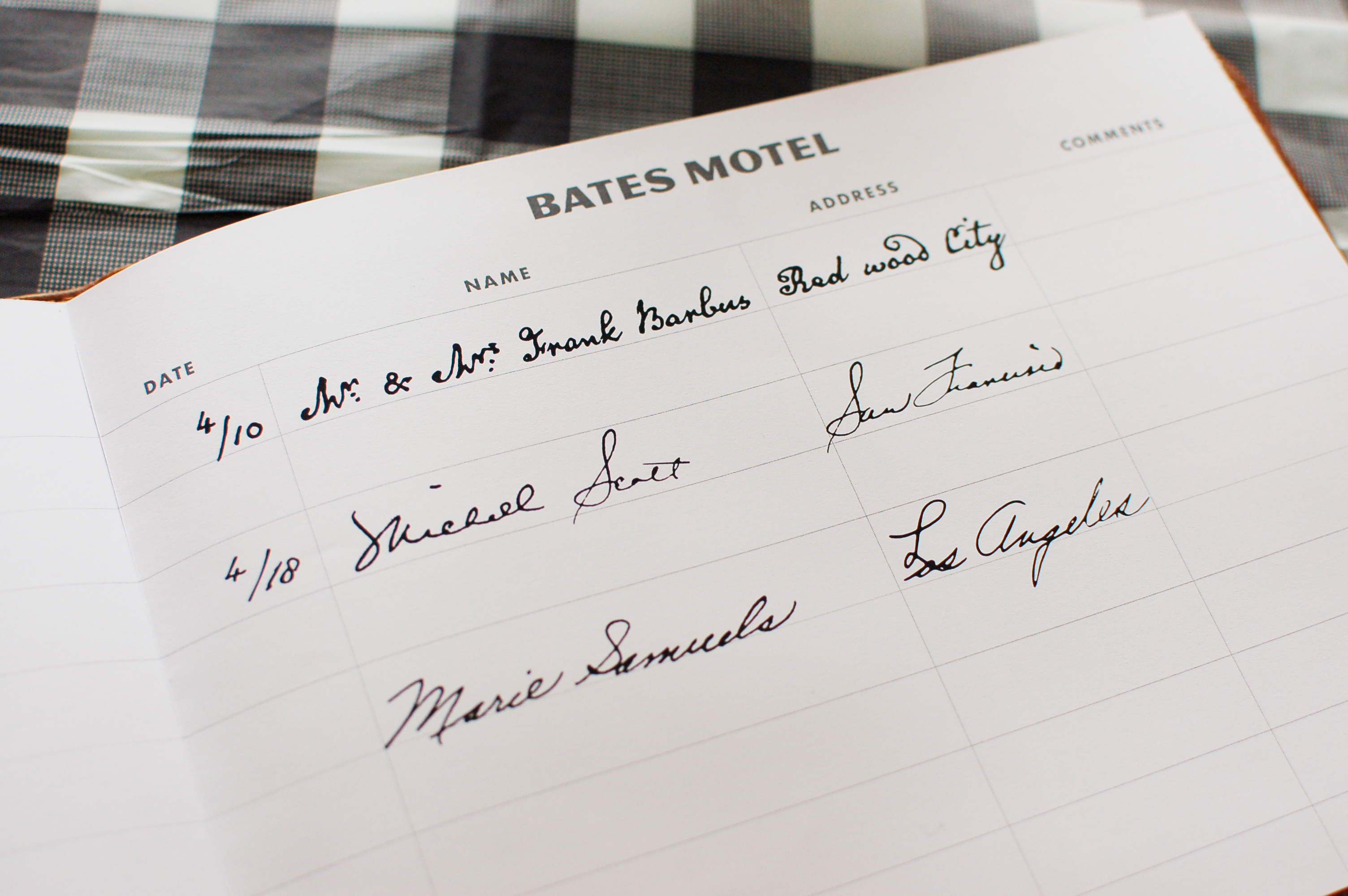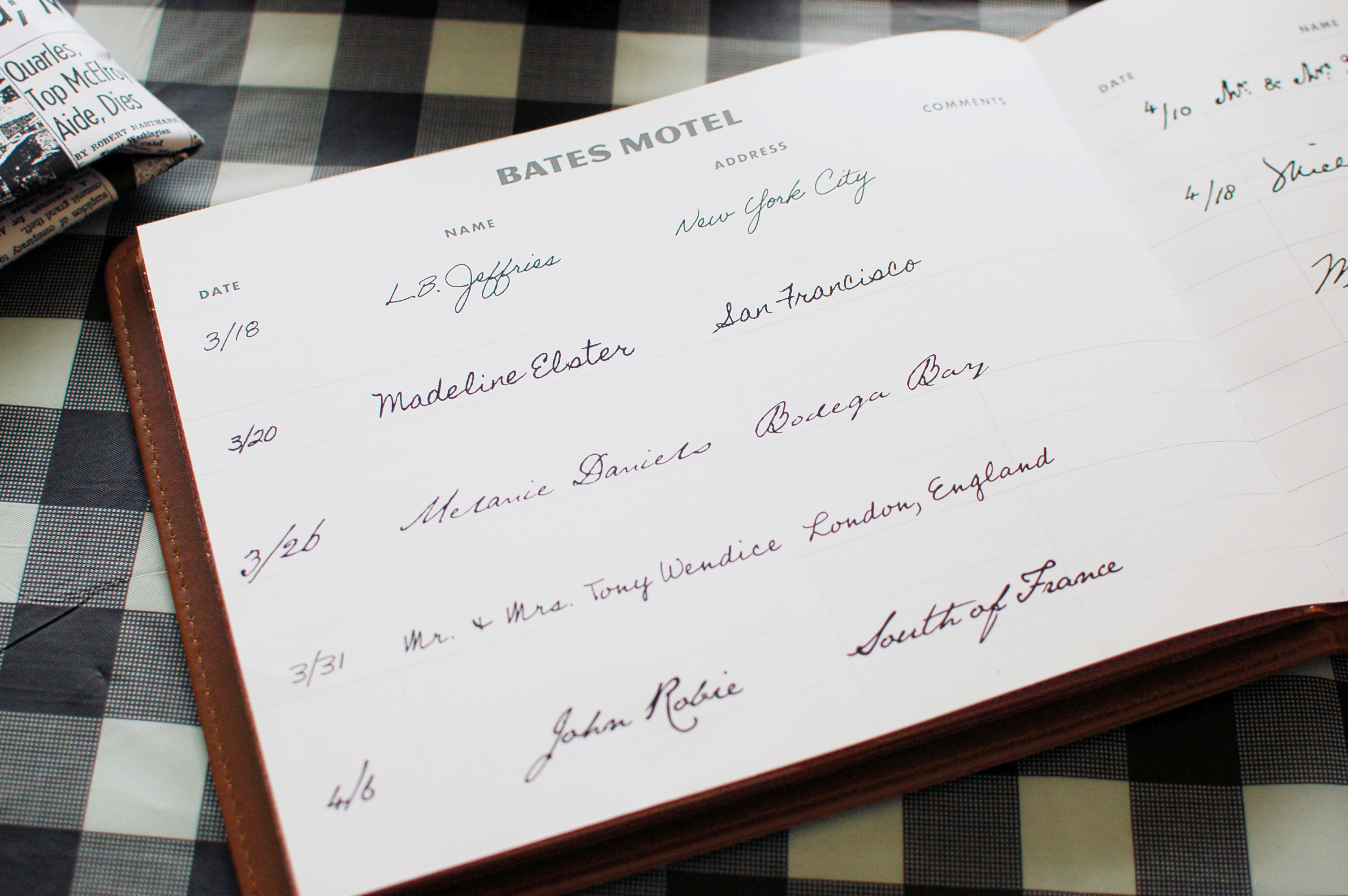An important prop: the Bates Motel guestbook