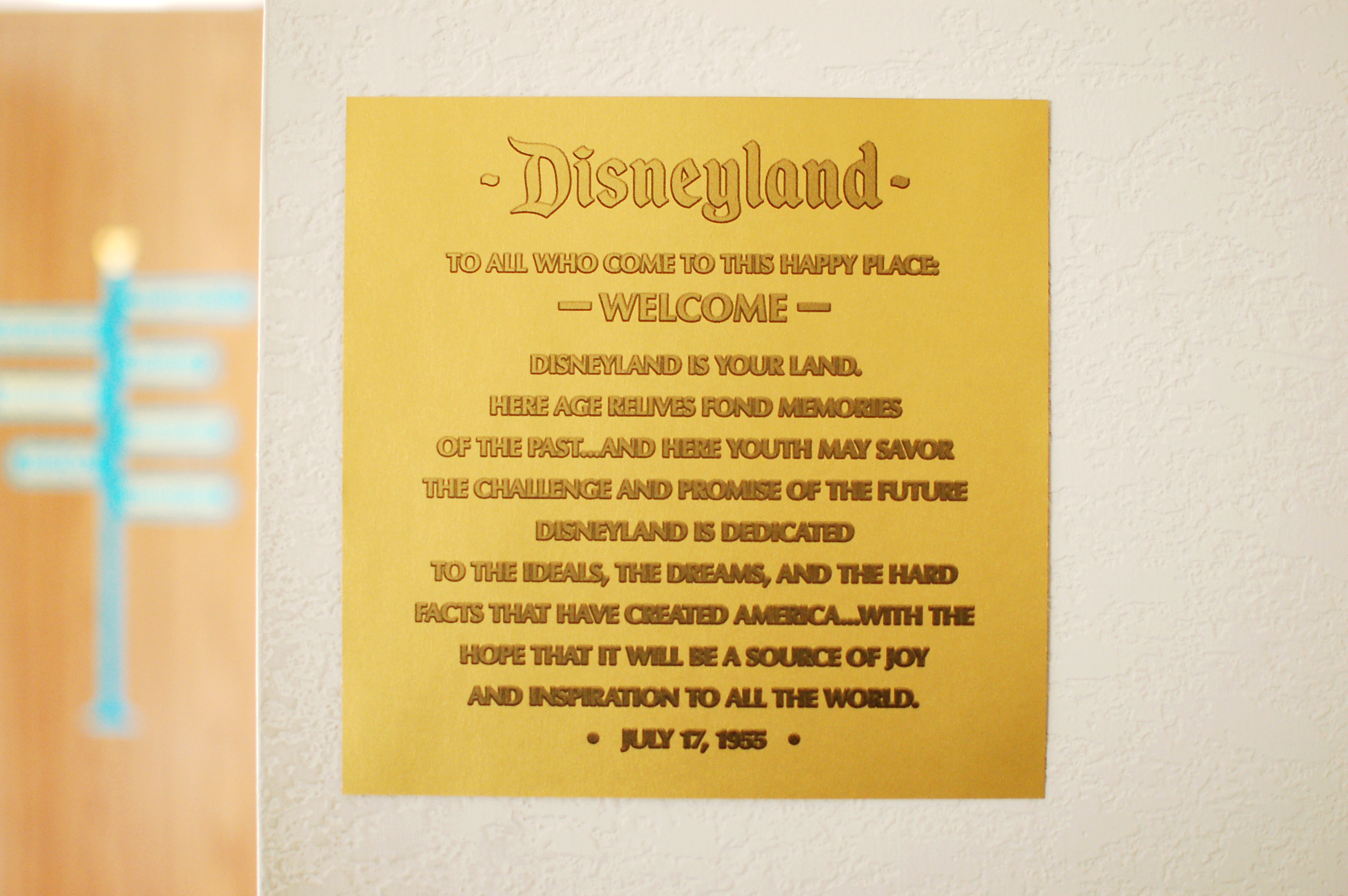 I recreated the Disneyland Dedication Plaque, which was read aloud by Walt Disney himself on the opening day of the park in 1955. Today, the plaque is located at the end of Main Street at the base of the flag pole. I created an emboss effect on the type and used a gradient to give it a realistic look. This is printed on a metallic gold paper.