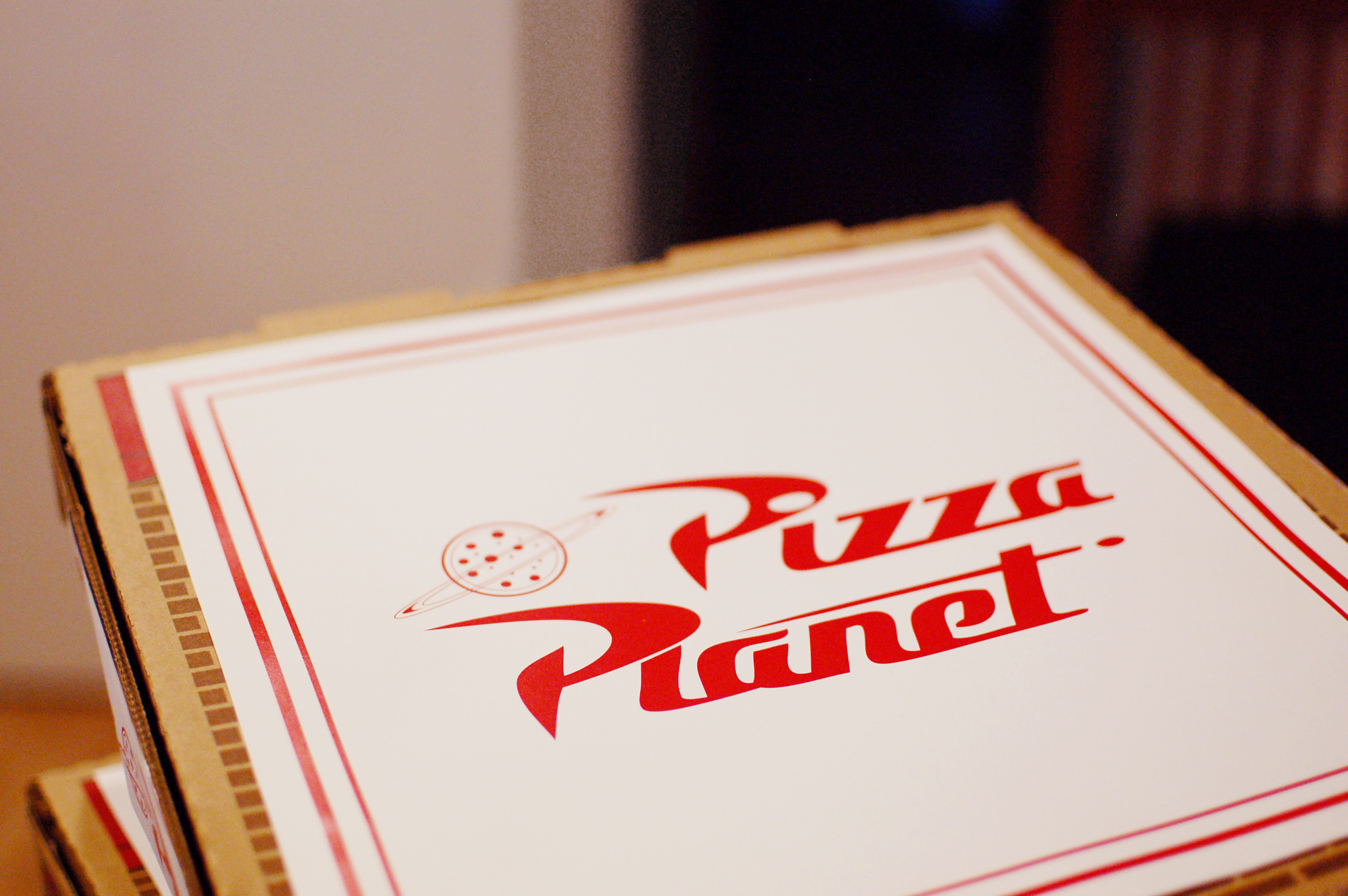 We pretending we were eating from “Pizza Planet” by printing out these “Pizza Planet” to place on our pizza boxes to further immerse ourselves in the Toy Story universe.
