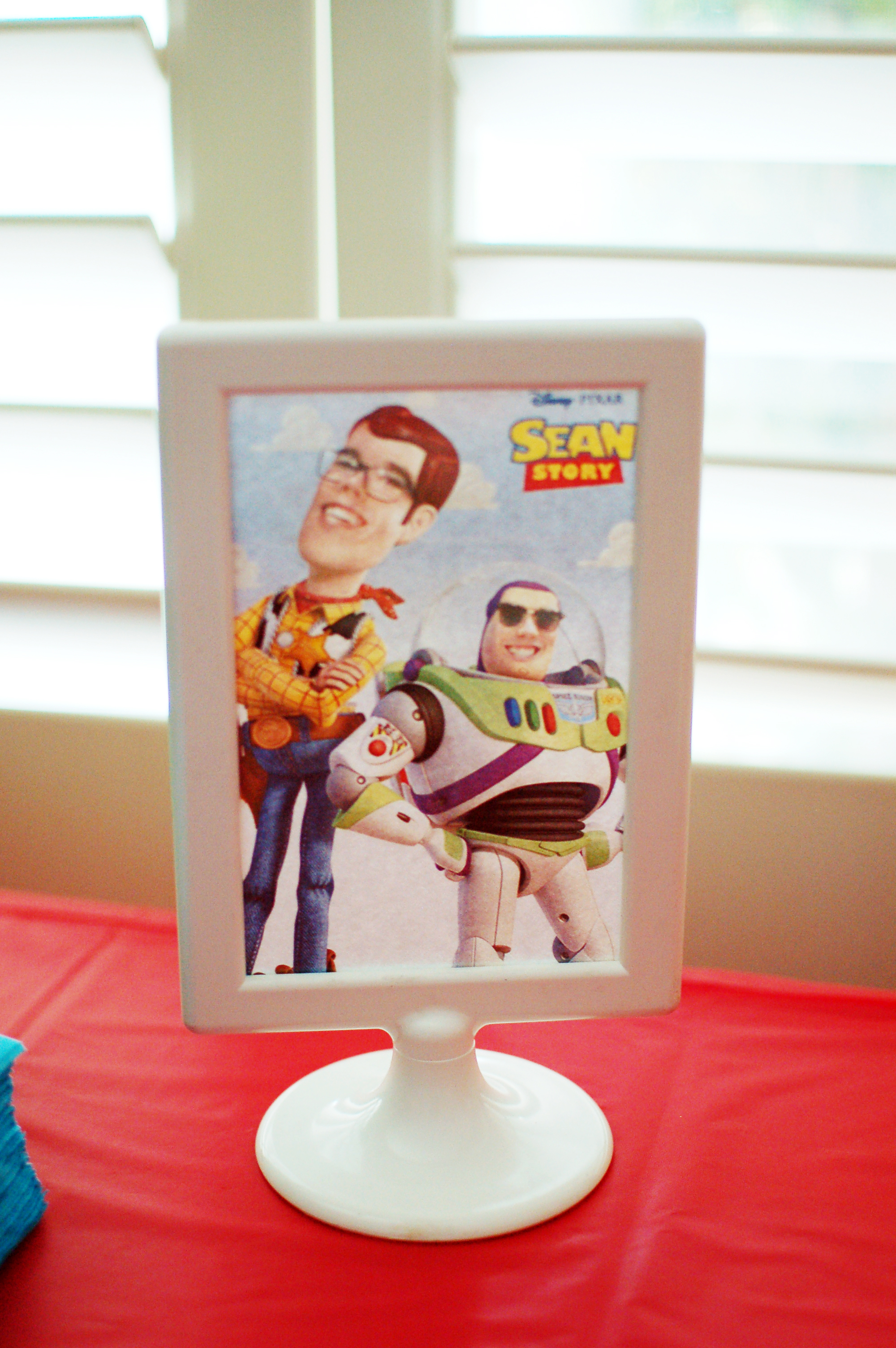 As a table center piece, I photoshopped the birthday boy’s face onto Woody and Buzz.