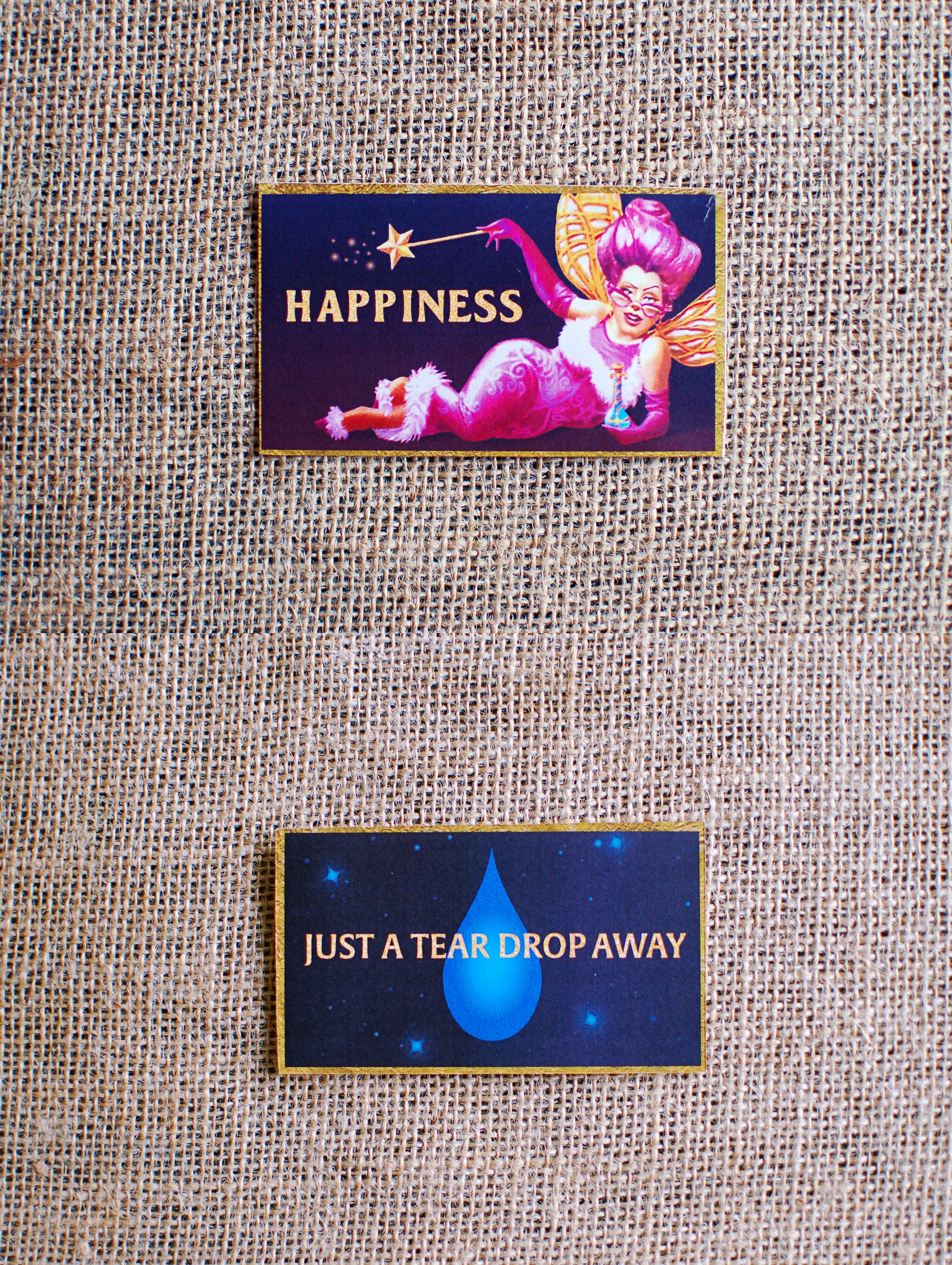For those who know Shrek 2, this hero prop is an important part of the sequel. While the “Just a Tear Drop Away” side was recreated completely in Illustrator, parts of the “Happiness” side were taken from illustrations of the Fairy Godmother in the movie. Recreating this card proved to be more challenging than I thought, but in the end, it turned out almost identical to the actual card.