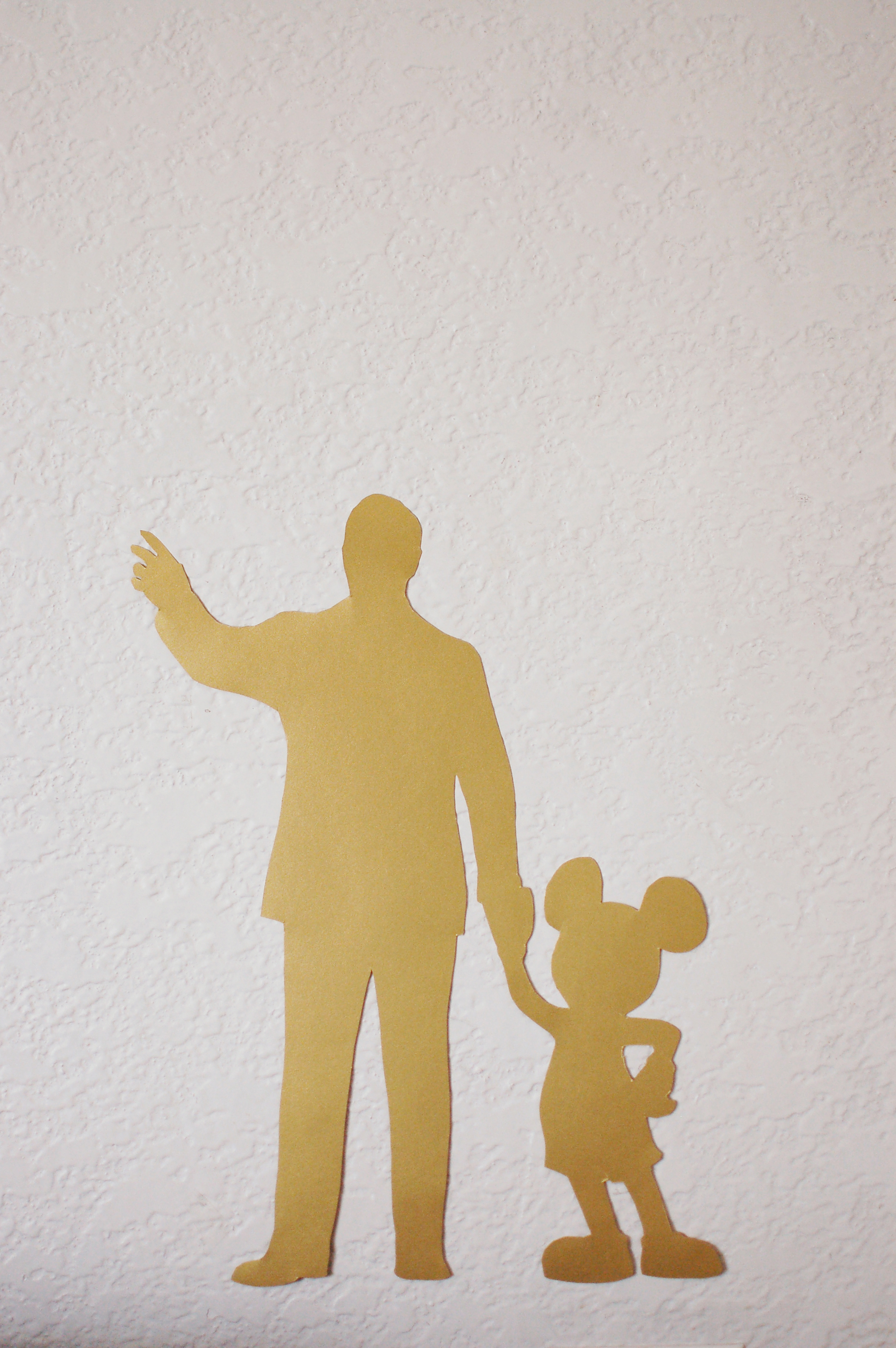 I cut out the "Partners" statue of Walt & Mickey holding hands on gold metallic paper, to make it feel statuesque. The real statue stands in front of the Disneyland castle.